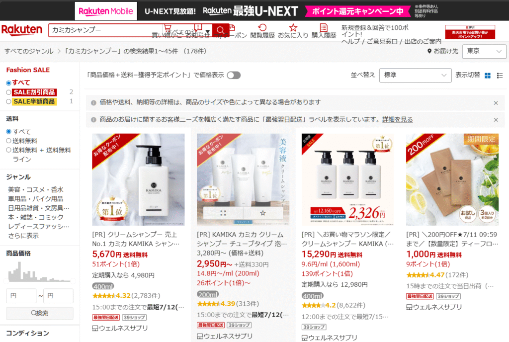 クリームシャンプーという特殊な商品特性や美容成分にこだわった高品質な製品であることから、カミカシャンプーは一般的な量販店での展開は限られているようです。